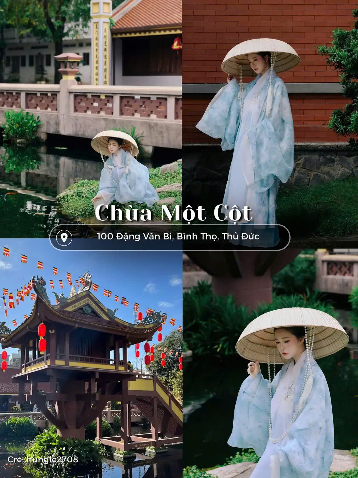 Phiên bản Chùa Một Cột tại Sài Gòn mang dáng vẻ cổ kính, yên bình. Đây là địa điểm chụp hình áo dài đẹp ở Sài Gòn phù hợp với áo dài truyền thống và concept văn hóa Việt.