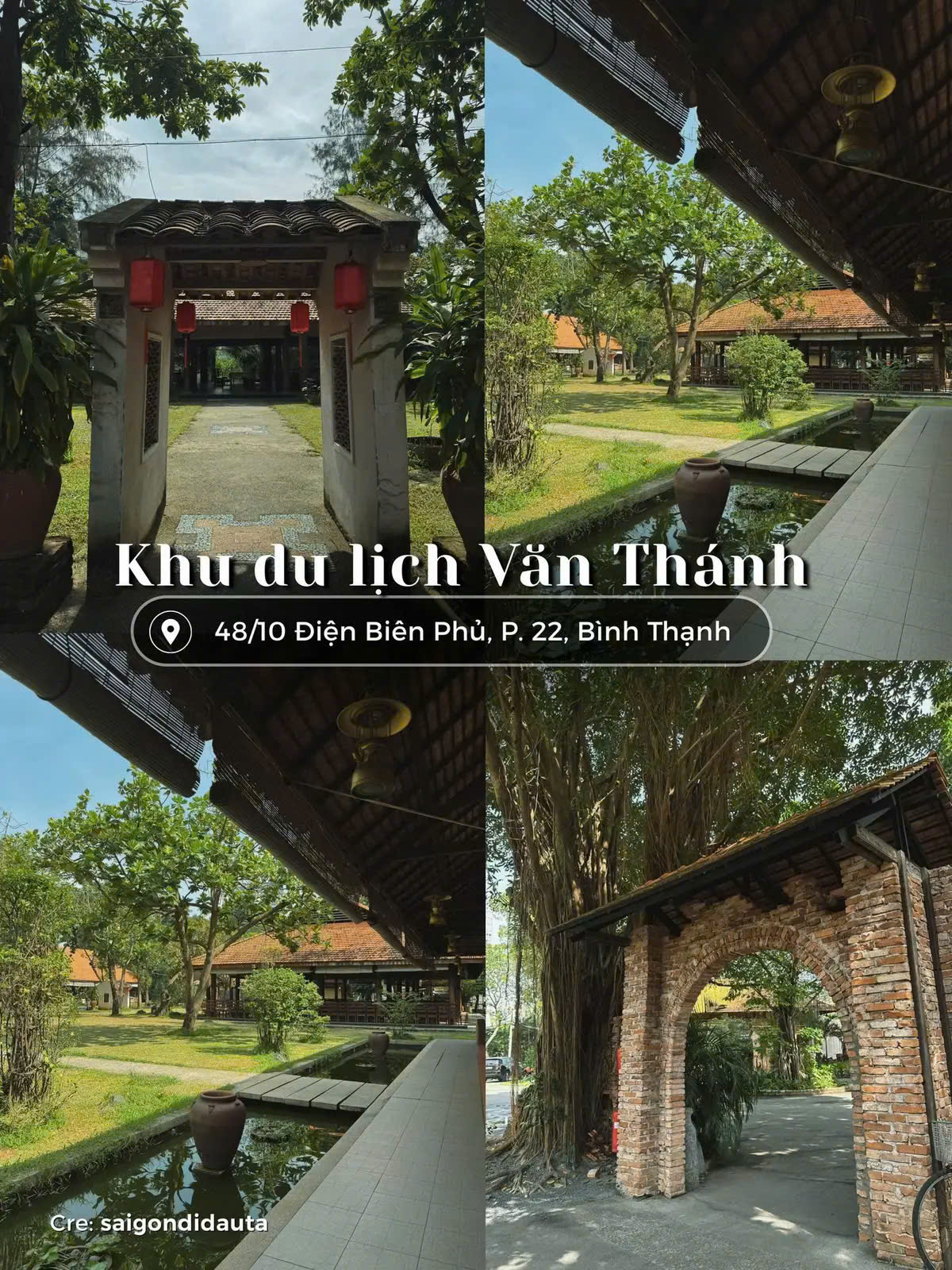 KDL Văn Thánh có không gian sông nước, cầu tre và cây xanh. Đây là địa điểm chụp hình áo dài đẹp ở Sài Gòn cho concept áo dài miền quê, nhẹ nhàng và truyền thống.