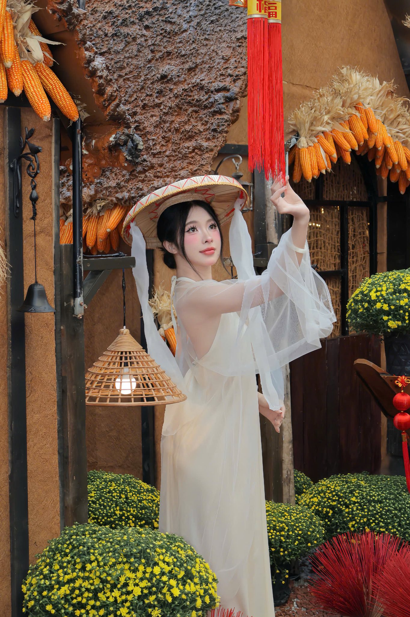Có những khu vực mang cảm giác làng quê ngày Tết truyền thống, thích hợp để chụp áo dài hoặc ảnh gia đình. Cũng có những góc mang đậm tinh thần Tây Bắc, mộc mạc và yên bình, rất phù hợp cho những ai yêu thích phong cách tự nhiên, gần gũi.