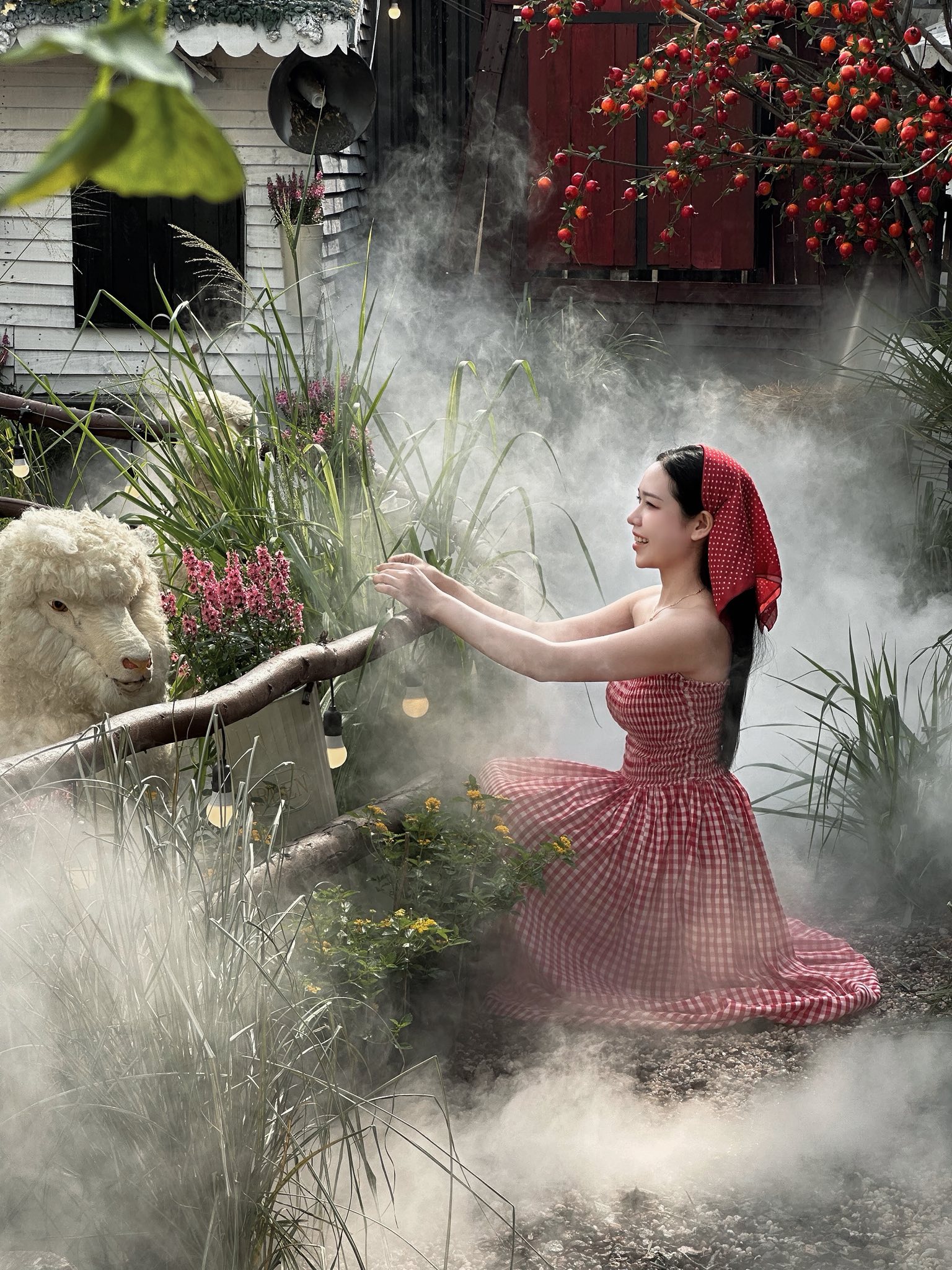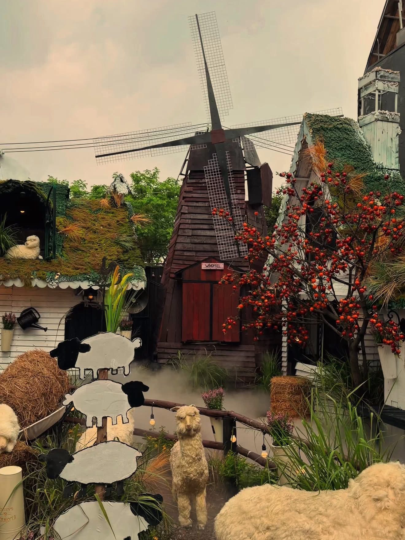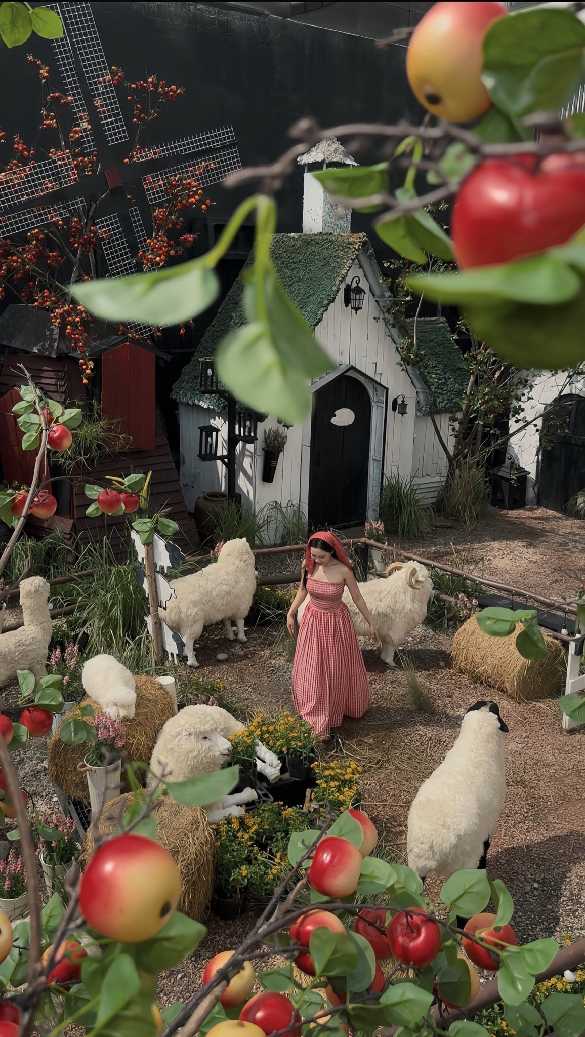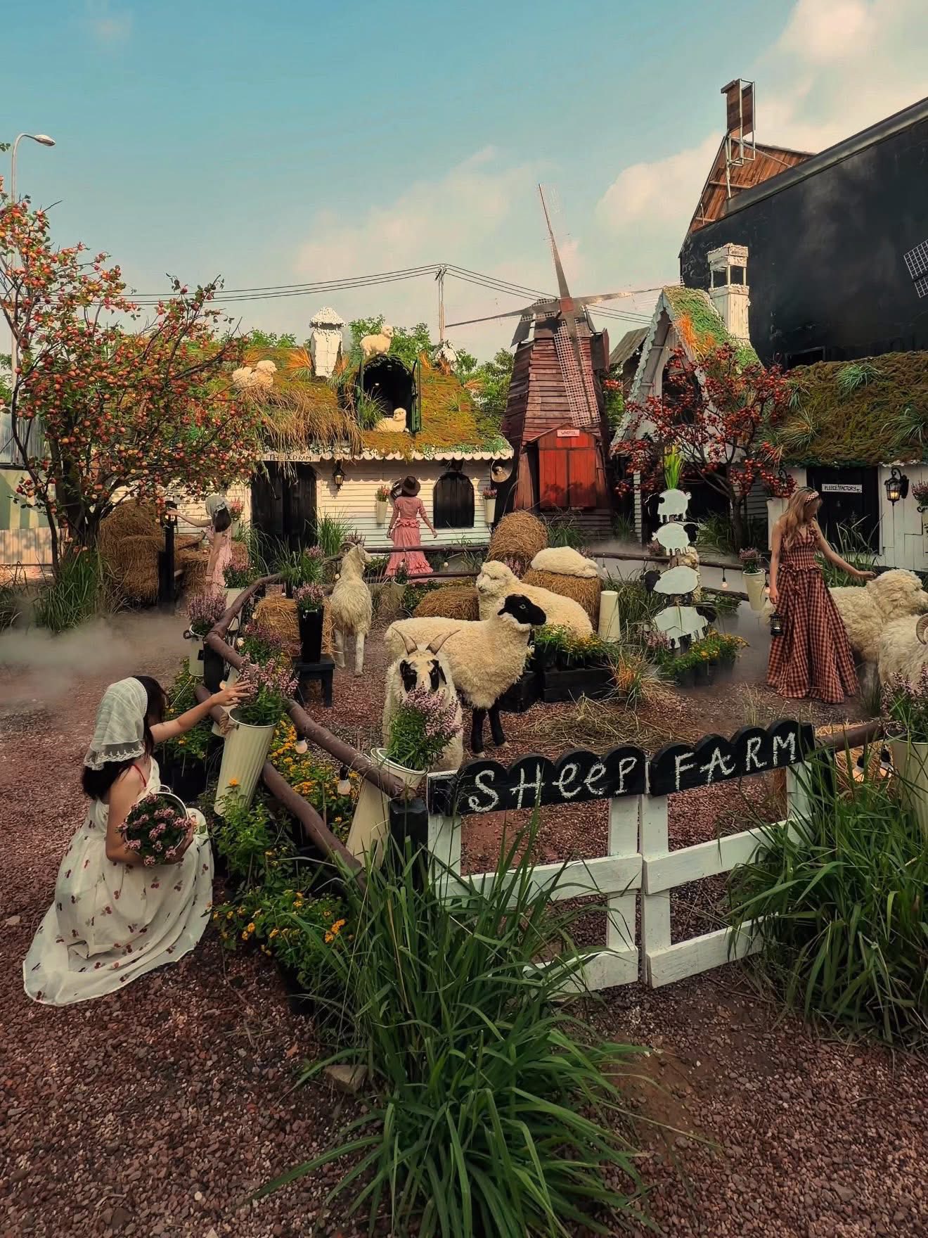 Concept mới lấy cảm hứng từ những nông trại châu Âu với hình ảnh cừu trắng, hàng rào gỗ, sân sỏi và ngôi nhà nhỏ xinh. Các chi tiết decor mang cảm giác mộc mạc nhưng vẫn tinh tế, tạo nên background chụp hình rất nhẹ nhàng.