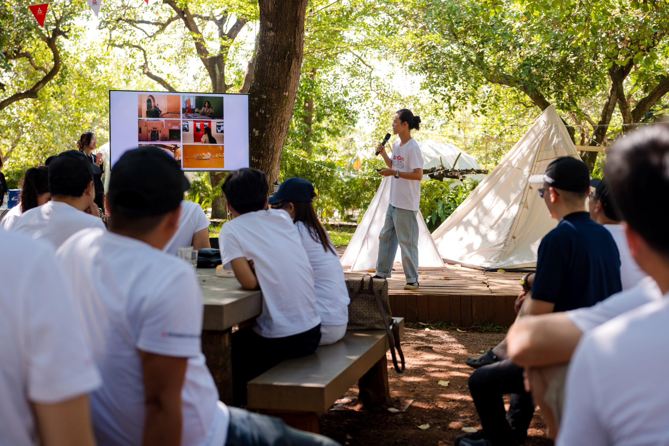 Ngay từ khi đặt chân đến Tropical Eglamping, các gia đình đã bắt đầu hành trình bằng hoạt động check-in đầy hào hứng. Không gian thiên nhiên trong lành kết hợp cùng khu vực setup chỉn chu tạo nên những khung hình đầu tiên tràn đầy năng lượng tích cực. Đây cũng là thời điểm để các thành viên làm quen, kết nối và cùng nhau chuẩn bị tinh thần cho chuỗi trải nghiệm phía trước