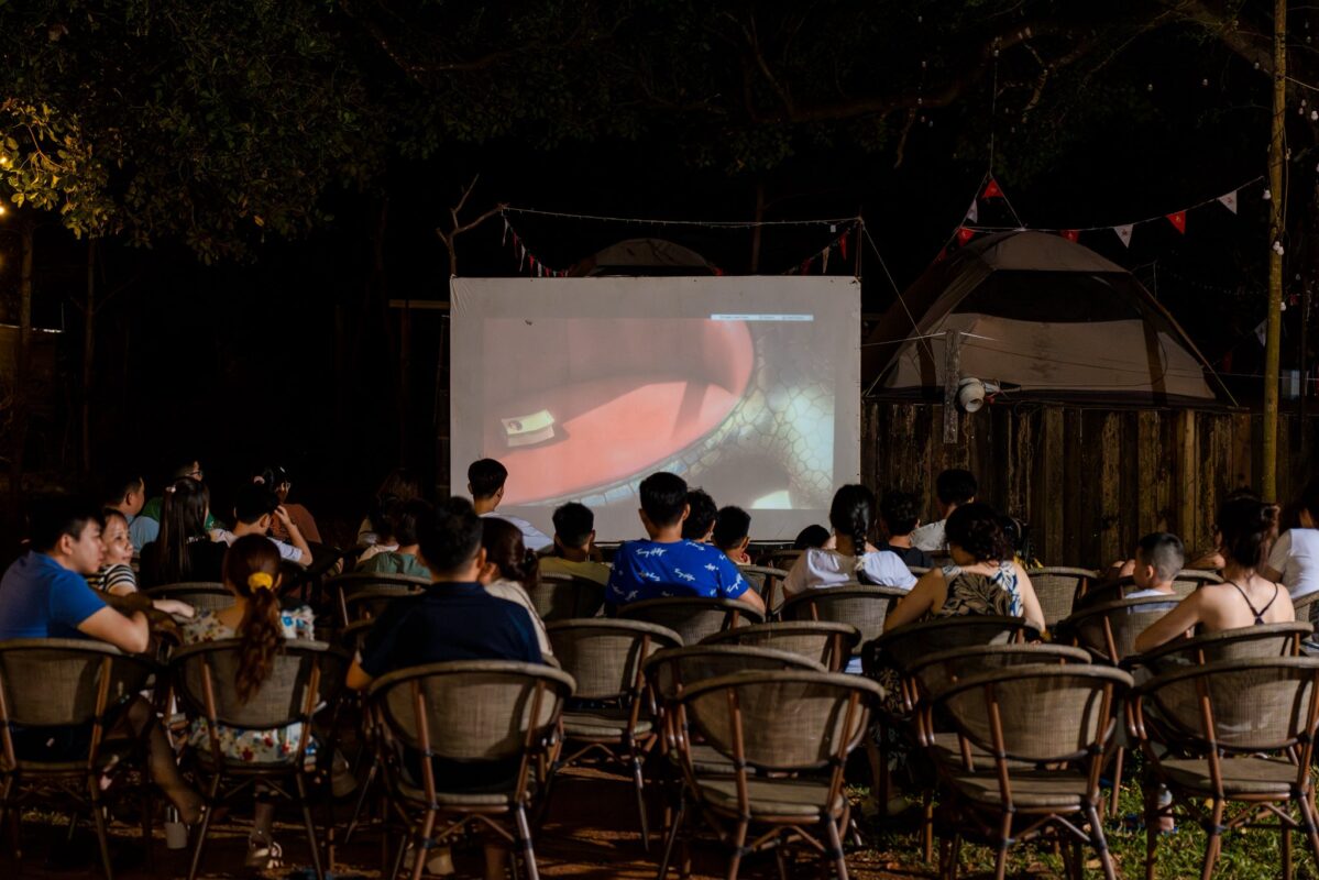 Không khí trở nên ấm cúng khi mọi người cùng quây quần thưởng thức buổi chiếu phim ngoài trời độc đáo. Đêm nhạc acoustic nhẹ nhàng giữa thiên nhiên giúp các gia đình thư giãn, tái tạo năng lượng và lưu giữ những khoảnh khắc đáng nhớ.