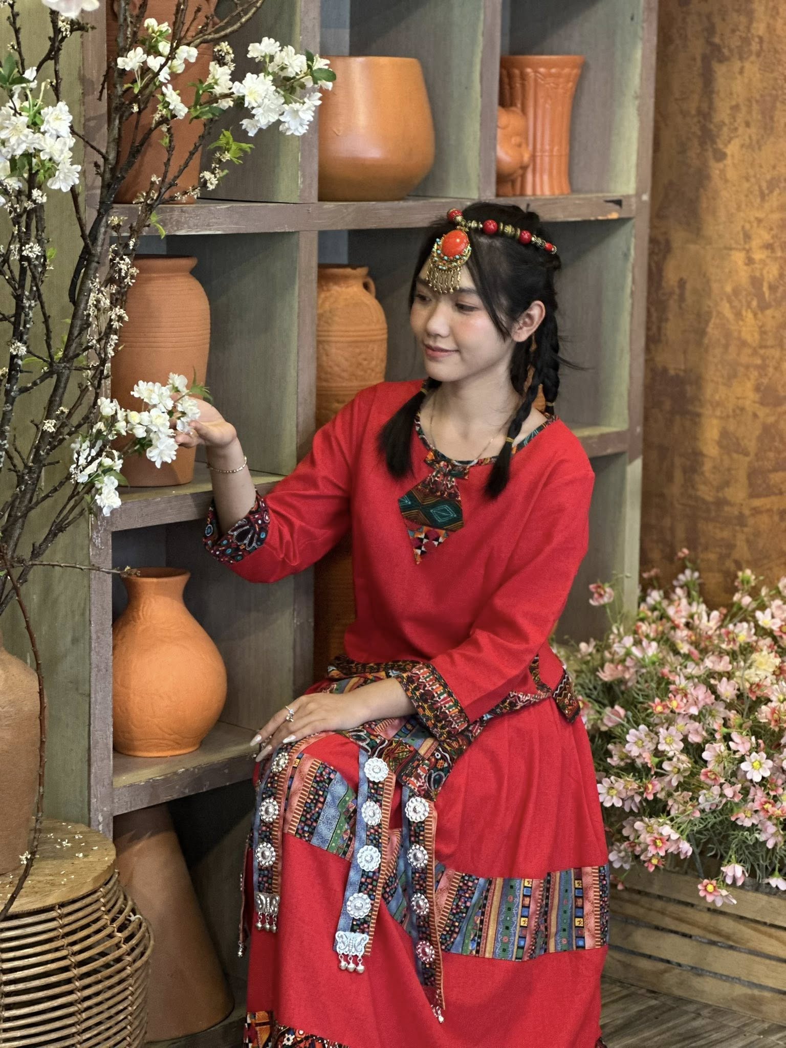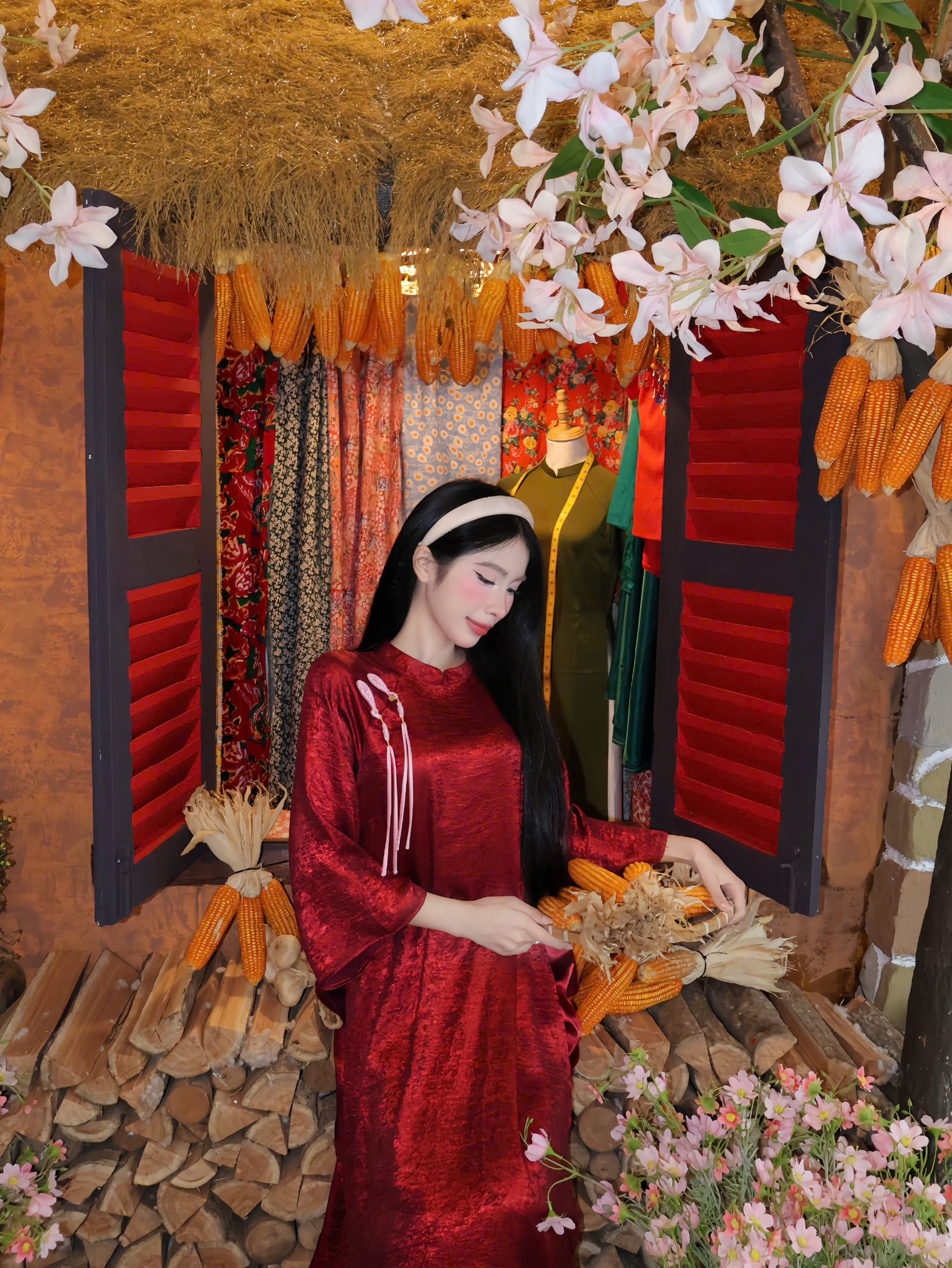 Một vài chi tiết nhỏ như họa tiết thổ cẩm, đồ decor thủ công hay mùi hương nhẹ nhàng gợi nhớ đến khói bếp vùng cao khiến không gian trở nên rất đặc biệt. Sự kết hợp giữa sắc đỏ rực rỡ của Tết và hơi thở núi rừng Tây Bắc mang đến một trải nghiệm mới lạ, vừa truyền thống vừa mang tính nghệ thuật cao.