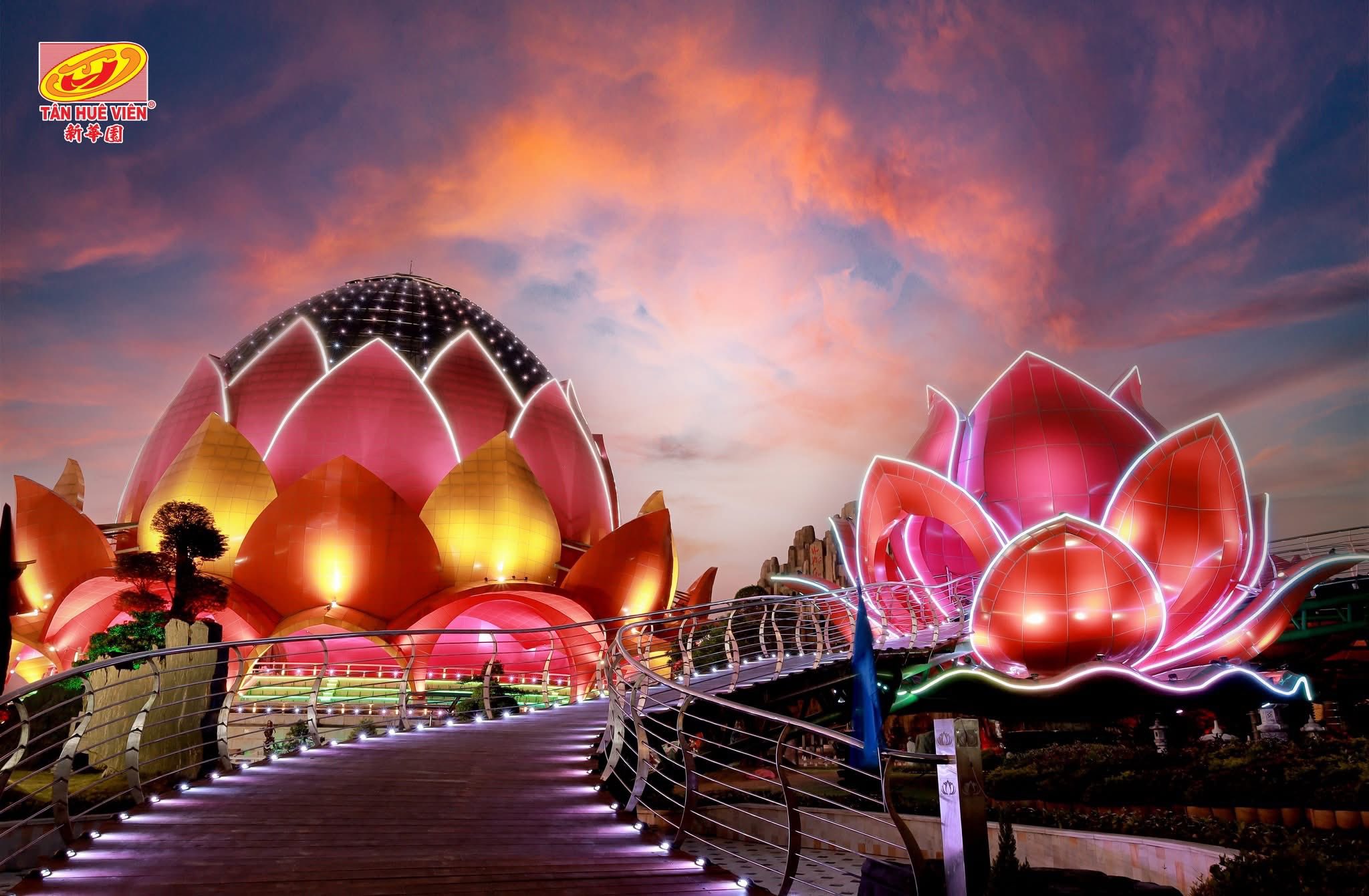 Điểm nổi bật của khu tham quan này chính là Liên Hoa Bảo Tháp – tòa tháp có hình dáng hoa sen vươn cao, tượng trưng cho sự thanh tịnh và giác ngộ trong Phật giáo.