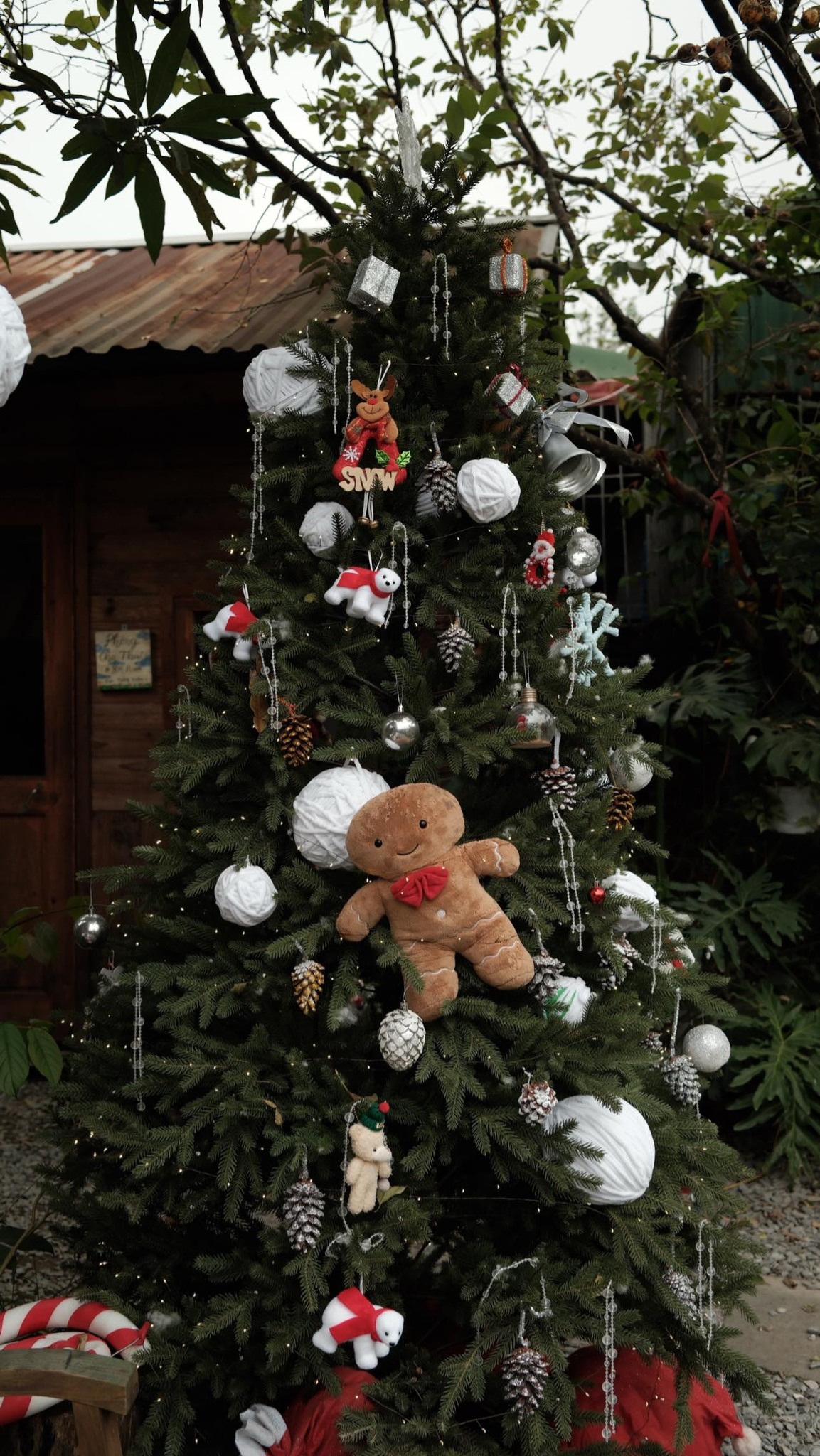 Những mái nhà nhỏ được phủ ánh đèn vàng, khu vườn được trang trí với thông xanh, ruy băng đỏ và các tiểu cảnh xinh xắn như người tuyết, xe gỗ Noel, hộp quà khổng lồ. Mỗi góc đều được chăm chút tỉ mỉ để khi bạn giơ máy lên là có ngay một bức ảnh “ngàn like”.