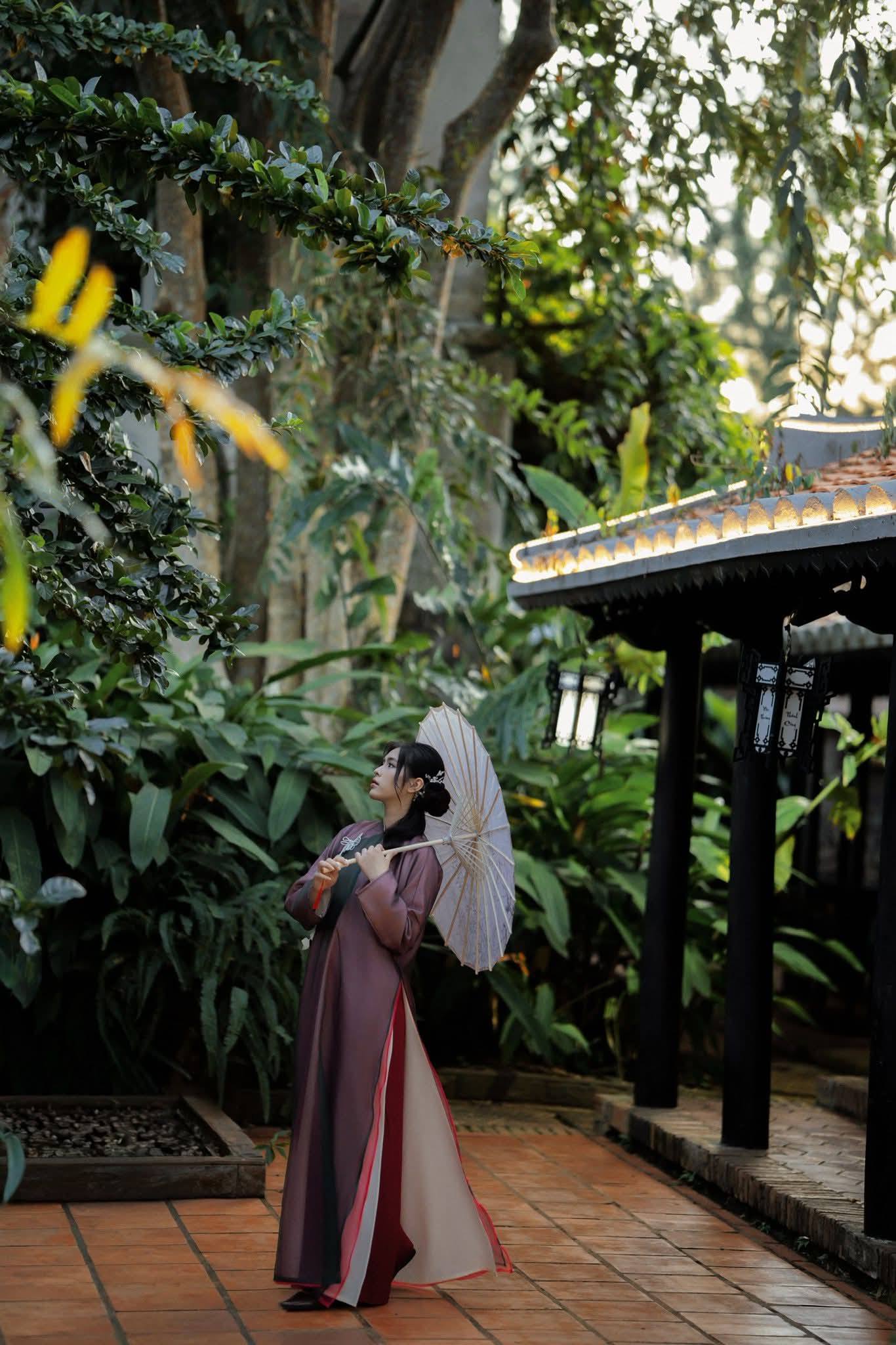 Những con đường lát đá, hàng cây rợp bóng và các ngôi nhà mang phong cách cổ điển tạo nên background nhẹ nhàng, rất phù hợp với áo dài trắng hoặc áo dài họa tiết truyền thống. Không gian tại đây khá yên tĩnh, dễ dàng chụp ảnh mà không bị ảnh hưởng bởi đám đông.