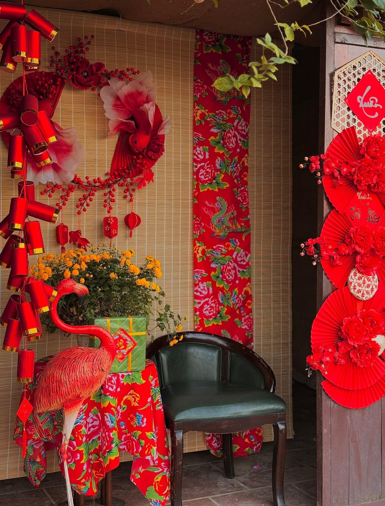 Chuẩn bị thêm phụ kiện Tết như quạt giấy, bao lì xì, hoa cầm tay để ảnh sinh động hơn